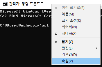- 마우스 오른쪽 단추로 제목 표시줄-> 속성을 차례로 클릭하고, [레거시 콘솔 사용]의 선택을 취소합니다.