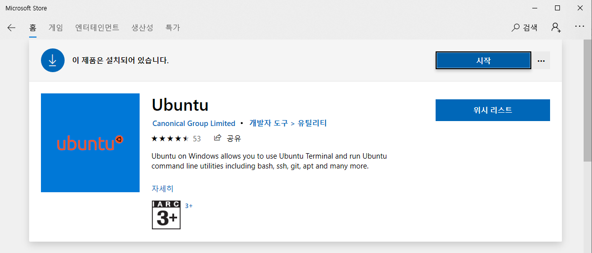 설치하고 나니 Microsoft Store에서 Ubuntu를 설치하라고 한다.