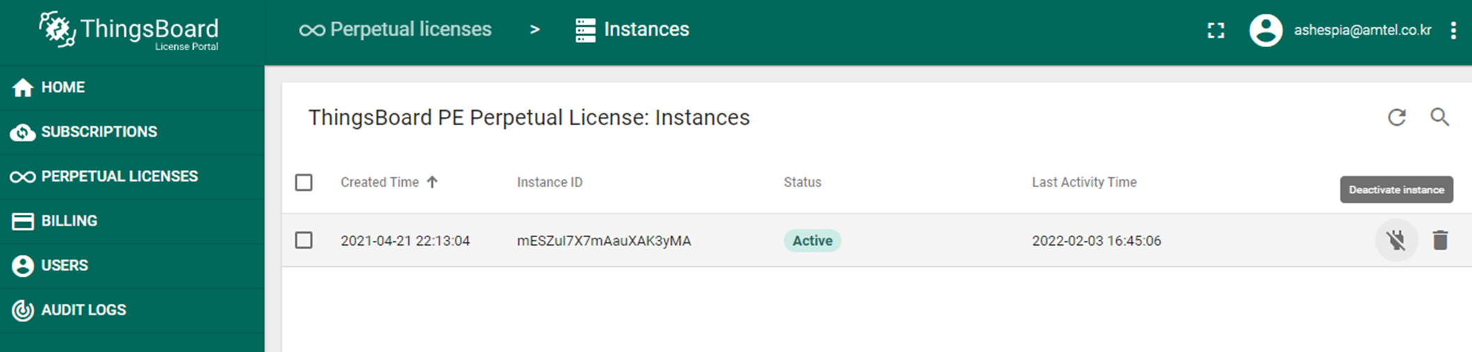 License Portal 하위에서도 Instances를 삭제