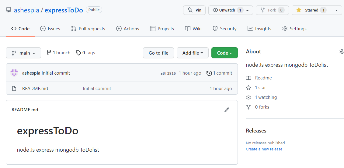 | Node js Express Github 프로젝트 생성 (Create new repository) 방법 (0) | 2022.02.23 |