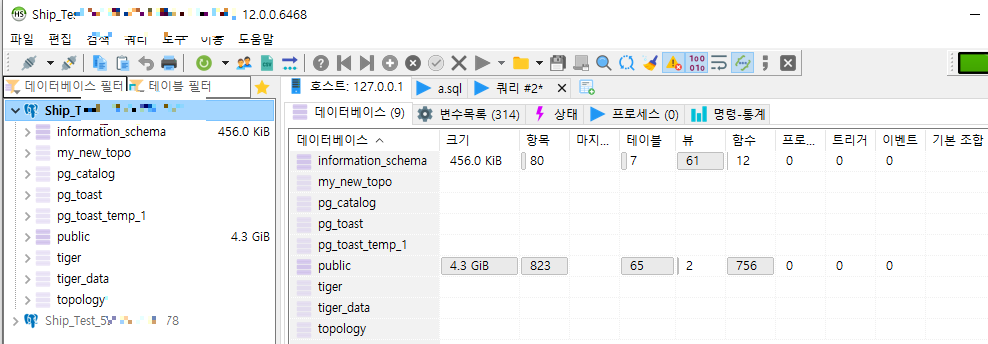 그래서 DB 클라이언트툴로 많이 사용하는 HeidiSQL로 연결해서 DB 상태를 확인해 보겠다.