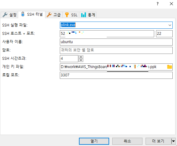 개인 키 파일 : ppk 파일 설정 pem으로 변환해서 접속해야한는 경우도 있는데 ppk로 접속 가능